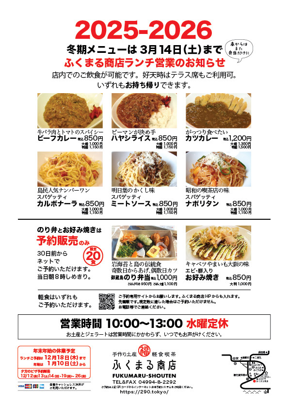 年末は12月26日まで、年始は1月10日からの営業となります。